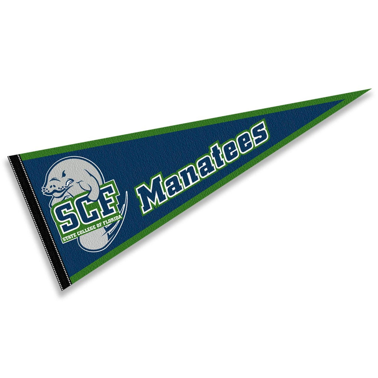 Our Flag, Banner or Pennant is a great way to show your college allegiance in your sports room, game room, office, bedroom, or any room by displaying as a wall banner. These pennants measure 12 in X 30 in, are made of Felt, and are single-sided Screen Printed with SCF Manatees insignias and logos. Each Flag, Banner or Pennant is Officially Licensed and Team, College, or University Approved approved which insures current insignias, wordmarks, and authentic colors. These pennants also include a sewn pennant stick sleeve on the left side which can be used to insert a pennant stick, if desired.