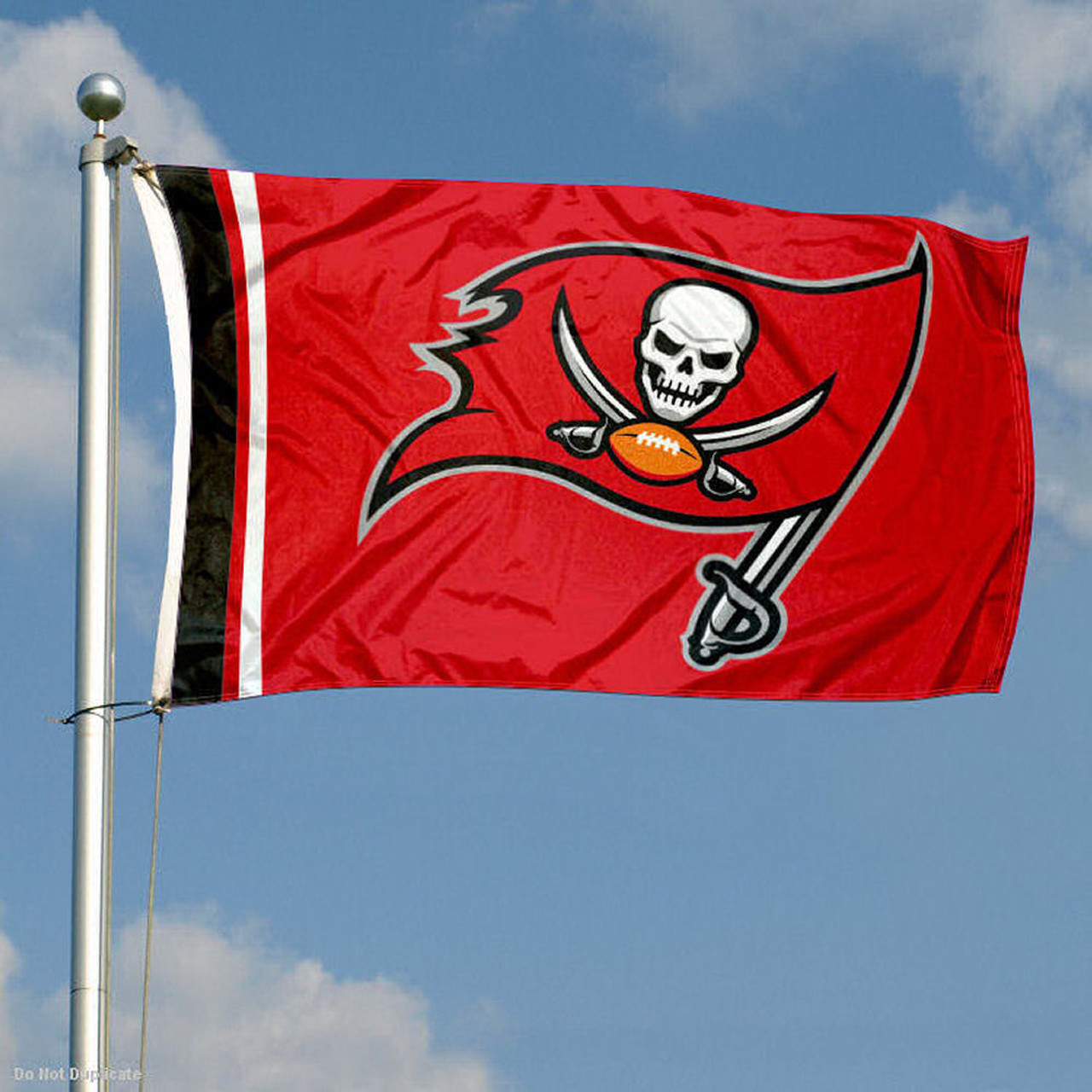 This Flag, Banner or Pennant measures a large 4x6 feet in size, has quadruple-stitched fly ends, is made of durable polyester, and has two metal grommets for attaching to your flagpole or tailgating flagpole. The screen printed Tampa Bay Buccaneers logos are League Licensed Merchandise and are viewable from both sides with the opposite side being a reverse image.