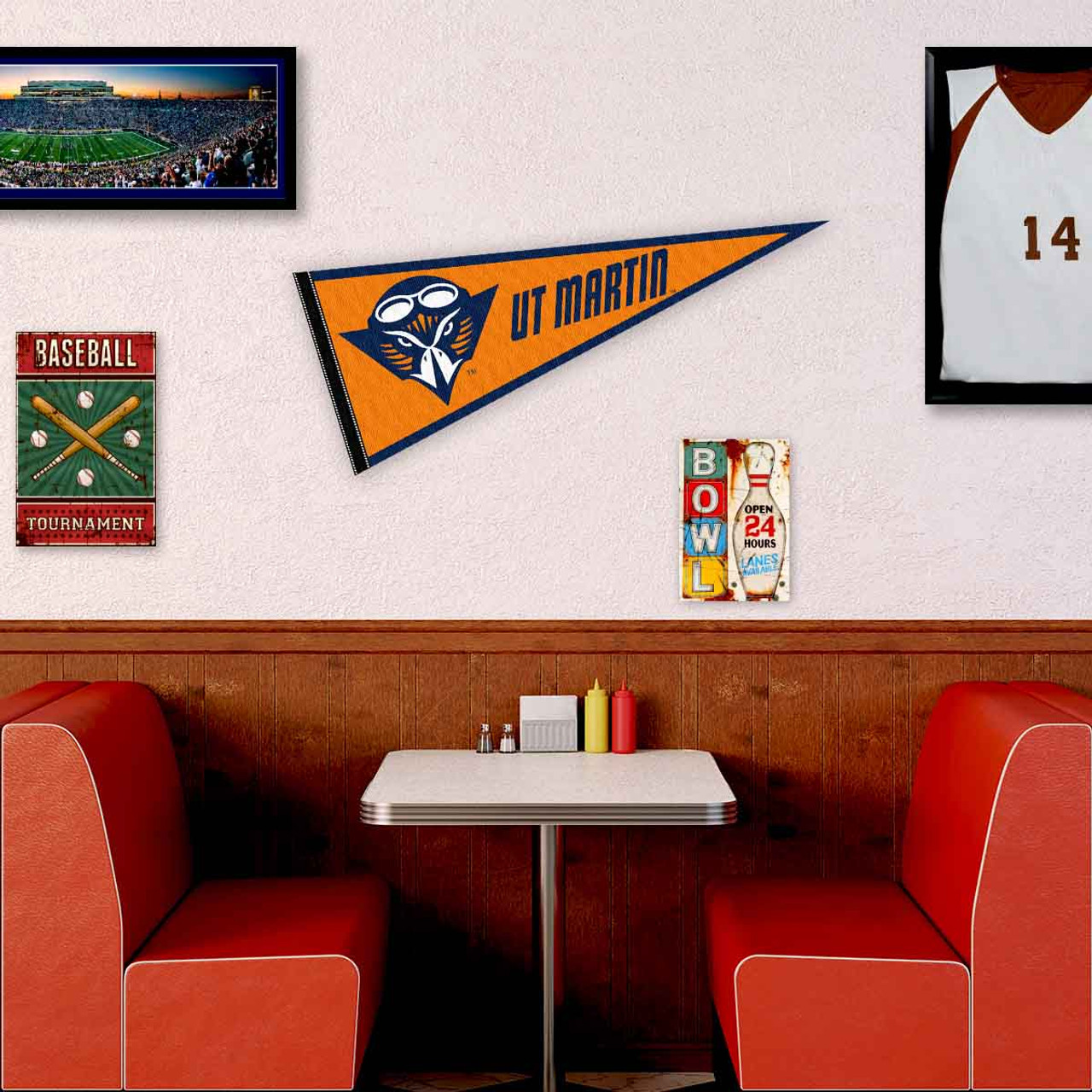 Our Flag, Banner or Pennant is a great way to show your tean allegiance in your sports room, game room, office, bedroom, or any room by displaying as a wall banner. These Pennants measure 12 in X 30 in, are made of Felt, and are single-sided Screen Printed with UTM Skyhawks insignias and logos. Each Flag, Banner or Pennant is Officially Licensed and Team, College, or University Approved approved which insures current insignias, wordmarks, and authentic colors. These pennants also include a sewn pennant stick sleeve on the left side which can be used to insert a pennant stick, if desired.