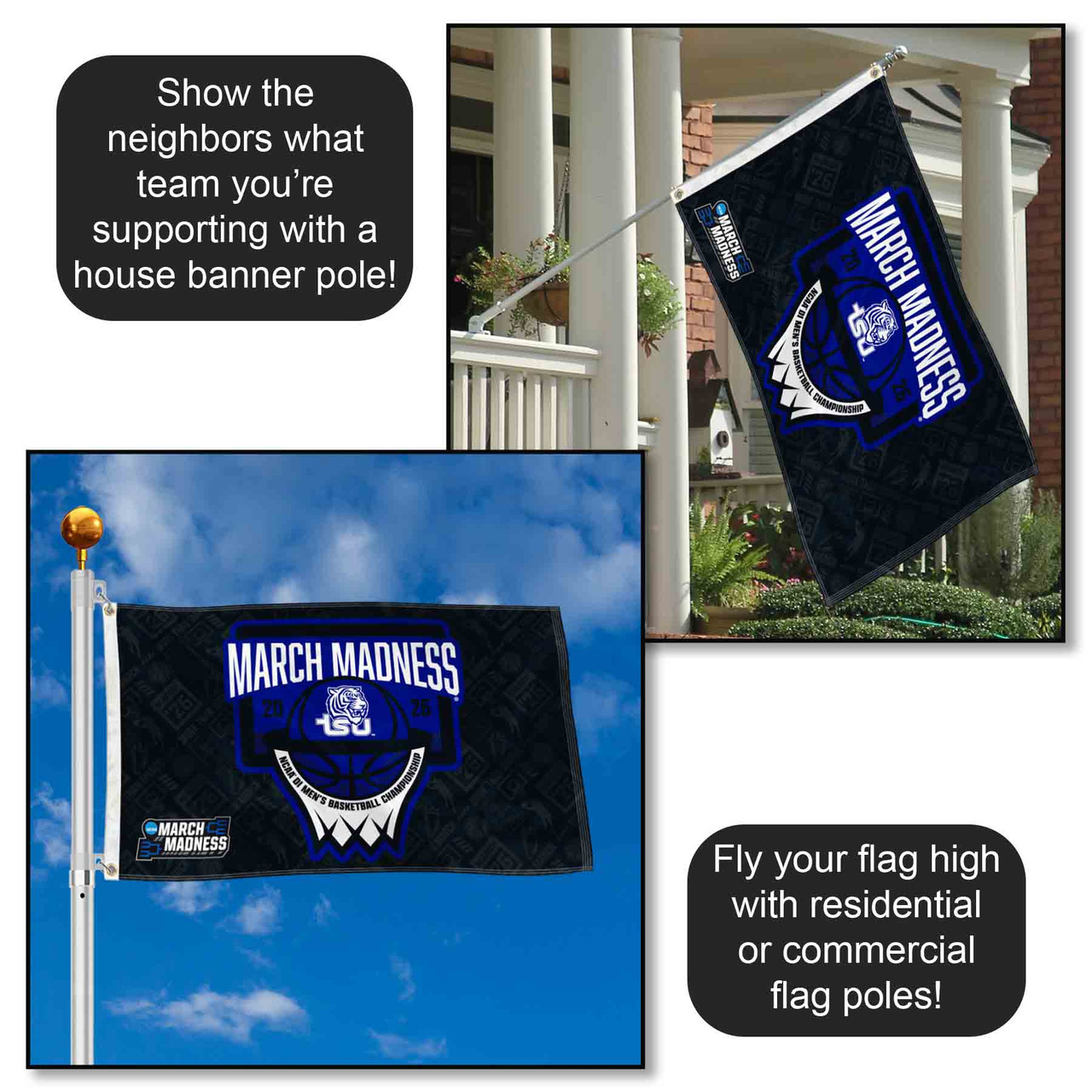 - Fly with your Tailgating Pole, House Flag Pole, or decorate as a Large Wall Banner