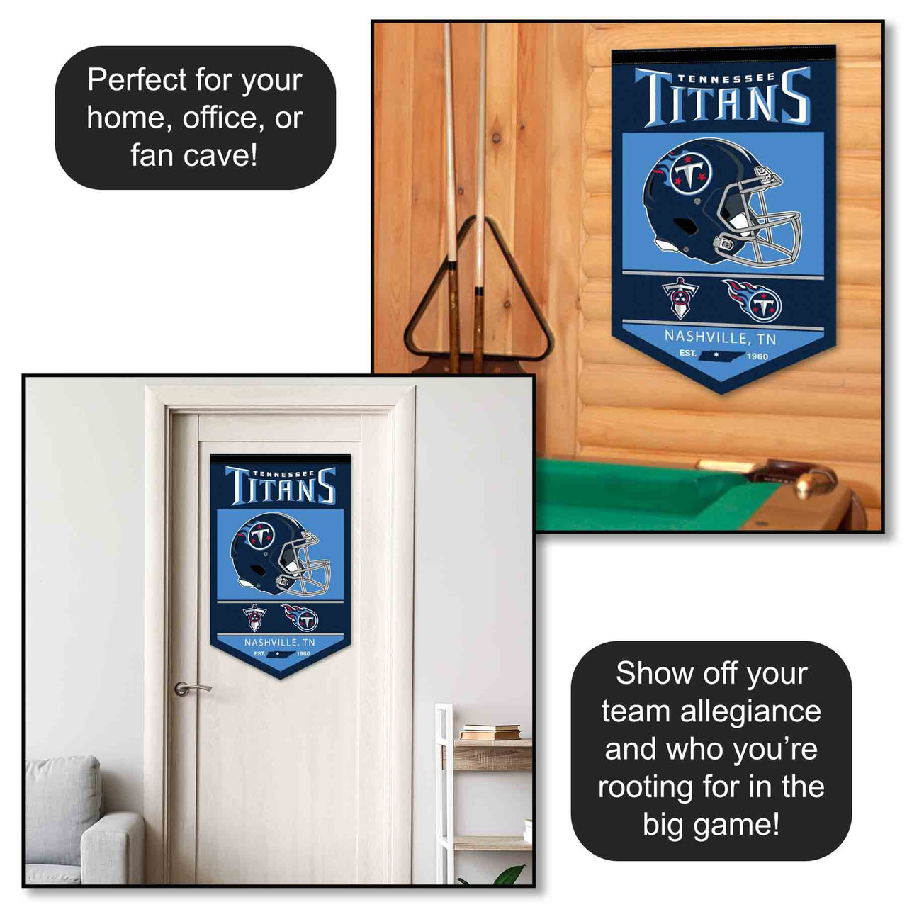 Our sports banner flag is an easy way to show your team allegiance in your sports room, game room, man cave, office, bedroom, or any room by displaying on any wall. These banners measure 15x24 inches, are made of soft poly felt, and are single-sided screen printed with the team insignias, heritage logos, and logos, as shown. Each banner is Officially Licensed by the selected team which insures correct insignias, wordmarks, and authentic team colors.