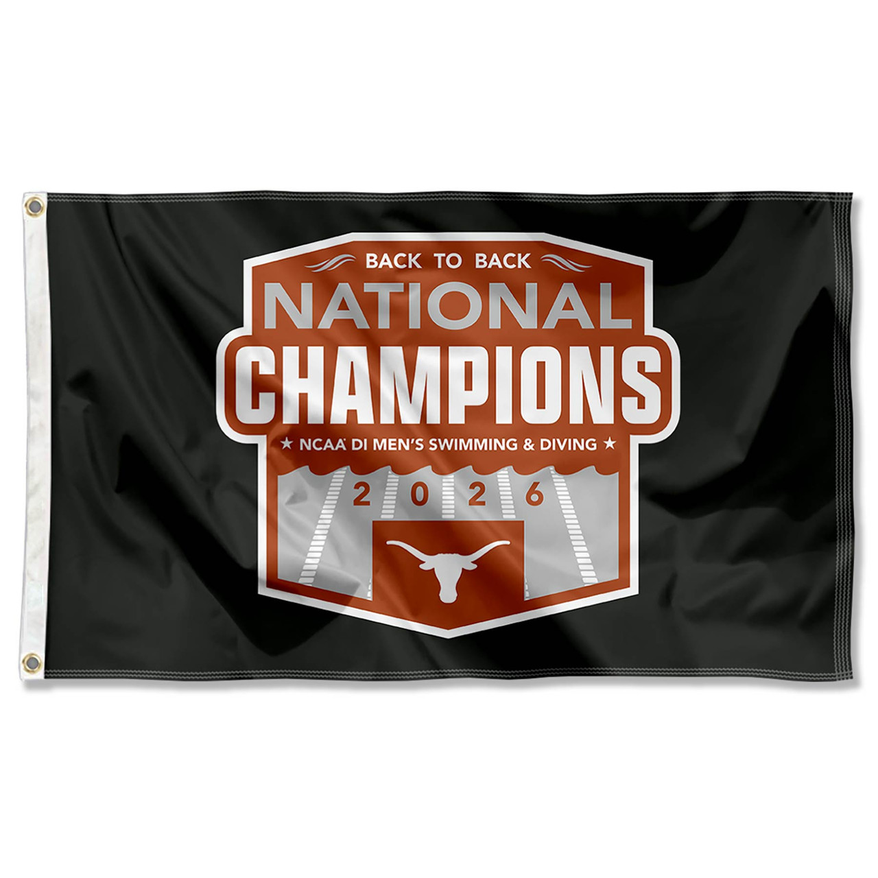 Texas Longhorns 2026 Men's Swimming and Diving National Champions Black Flag