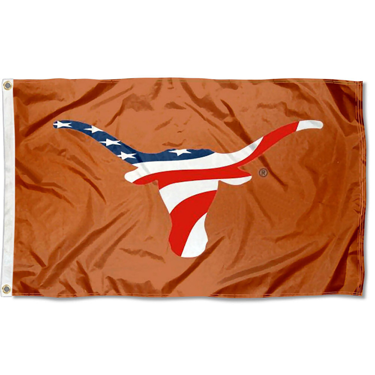 This Flag, Banner or Pennant measures 3 ft x 5 ft in size, has Quadruple Stitched fly ends, is made of durable Polyester, and has two Metal Grommets for attaching to your flagpole. The Screen Printed Texas UT Longhorns logos are League Officially Licensed and College, University, or Team Approved and are Viewable from Both Sides (Opposite Side is a Reverse Image).