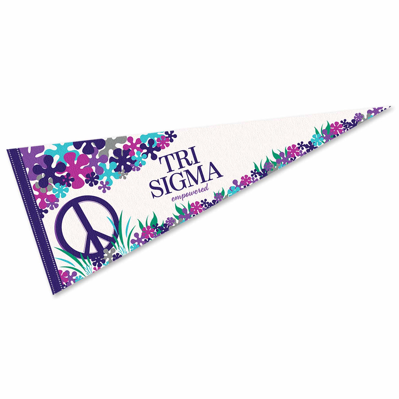 Our Pennant Banner Flag is a great way to show your spirit in your game room, office, bedroom, or any room by displaying on any wall. These Pennant Flags measure a full size 12 in X 30 in, are made of Felt, and are single-sided Screen Printed with the insignias and logos, as shown. Each Flag, Banner or Pennant is Officially Licensed by the Greek Organization which insures current insignias, wordmarks, and authentic colors. The logo pennants also include a pennant sleeve on the left side which can be used to insert a pennant stick, if desired. Licensed by Sewing Concepts, Inc.