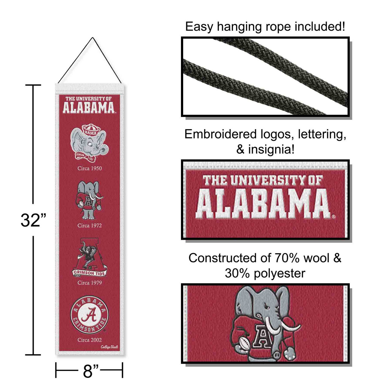 University of Alabama Crimson Tide Evolution 8x32 Inch Vertical Wool Embroidered Hanging Banner