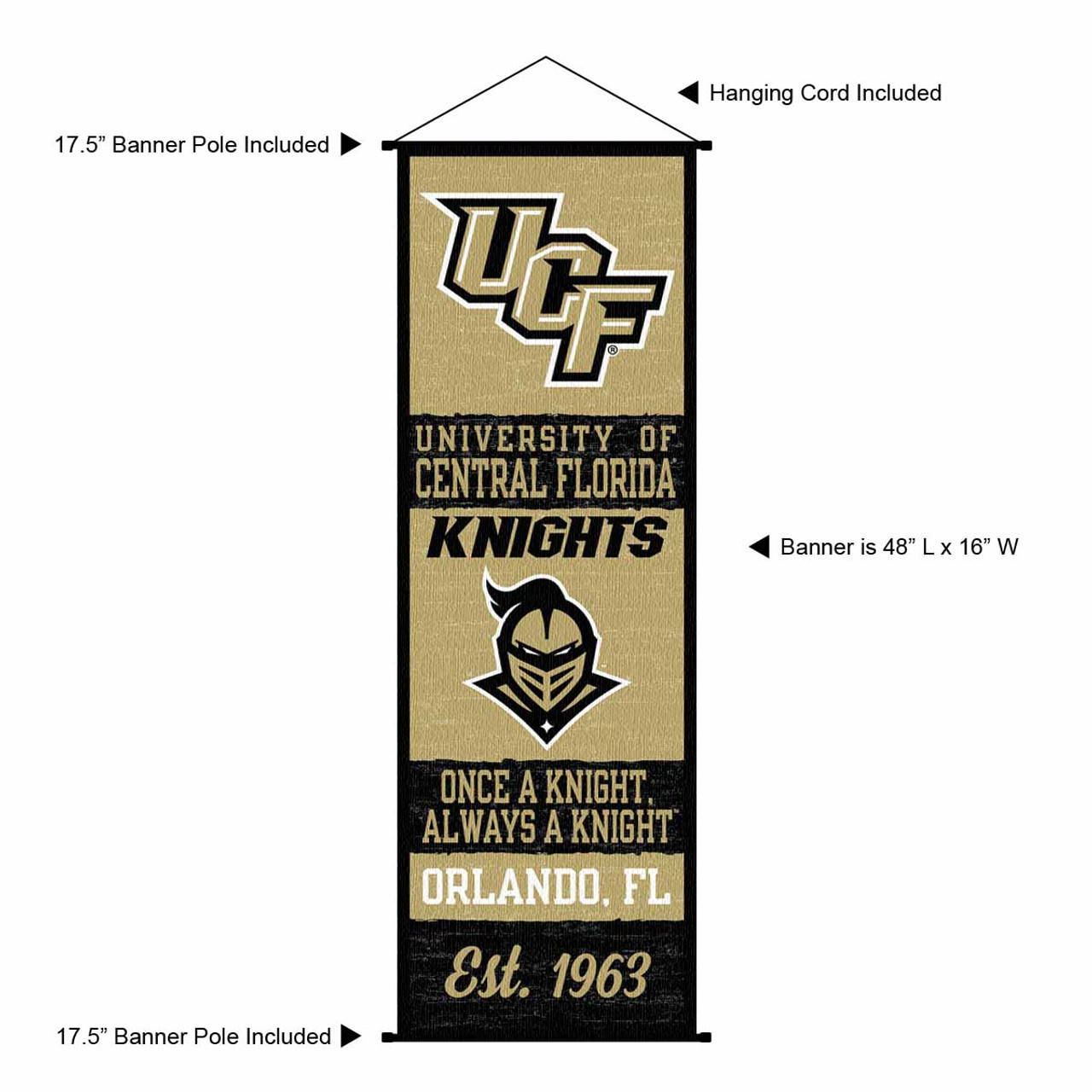 This Flag, Banner or Pennant has an overall dimension of roughly 17.5" wide by 48" in length. The "Ready to Hang" banner is made of 300D Thick Polyester and has a fabric width of 16" x 48". The top and bottom PVC banner poles are included and each measure 17.5" wide and have a diameter of .75 inches. In addition, a sturdy black hanging cord is included. Our large Wall Banners are Officially Licensed by Team, College, or University and the single-sided Screen Printed logos are Viewable on One Side. This banner is high quality decor which can be used as canvas art, poster, or sign for any room, wall, door, and a perfect gift idea for alumni, graduate, or incoming freshman.