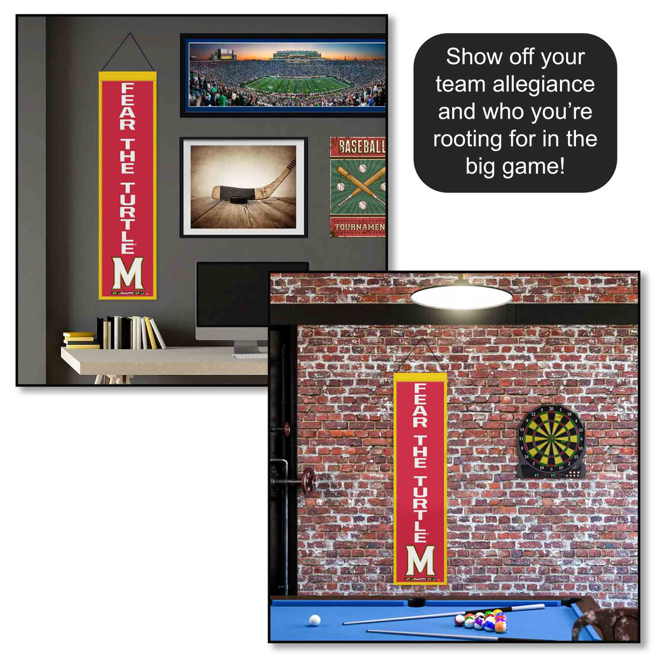 University of Maryland Terrapins Fear The Turtle 8x32 Inch Vertical Wool Embroidered Hanging Banner