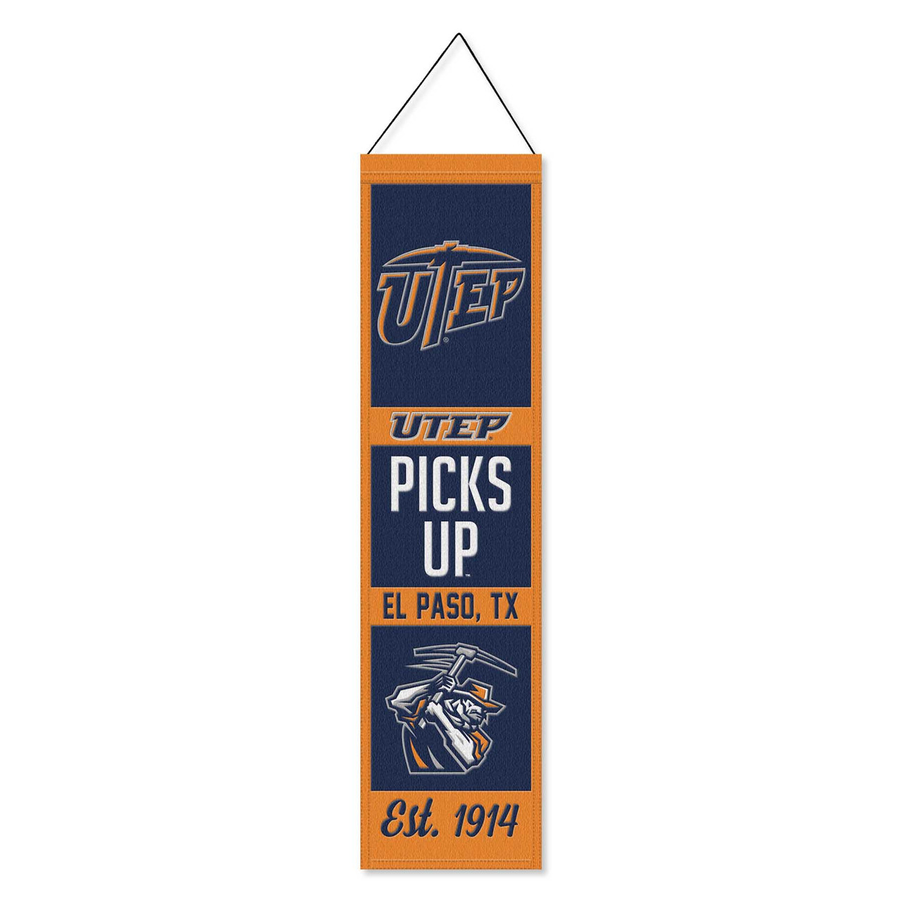 University of Texas El Paso Miners Evolution 8x32 Inch Vertical Wool Embroidered Hanging Banner