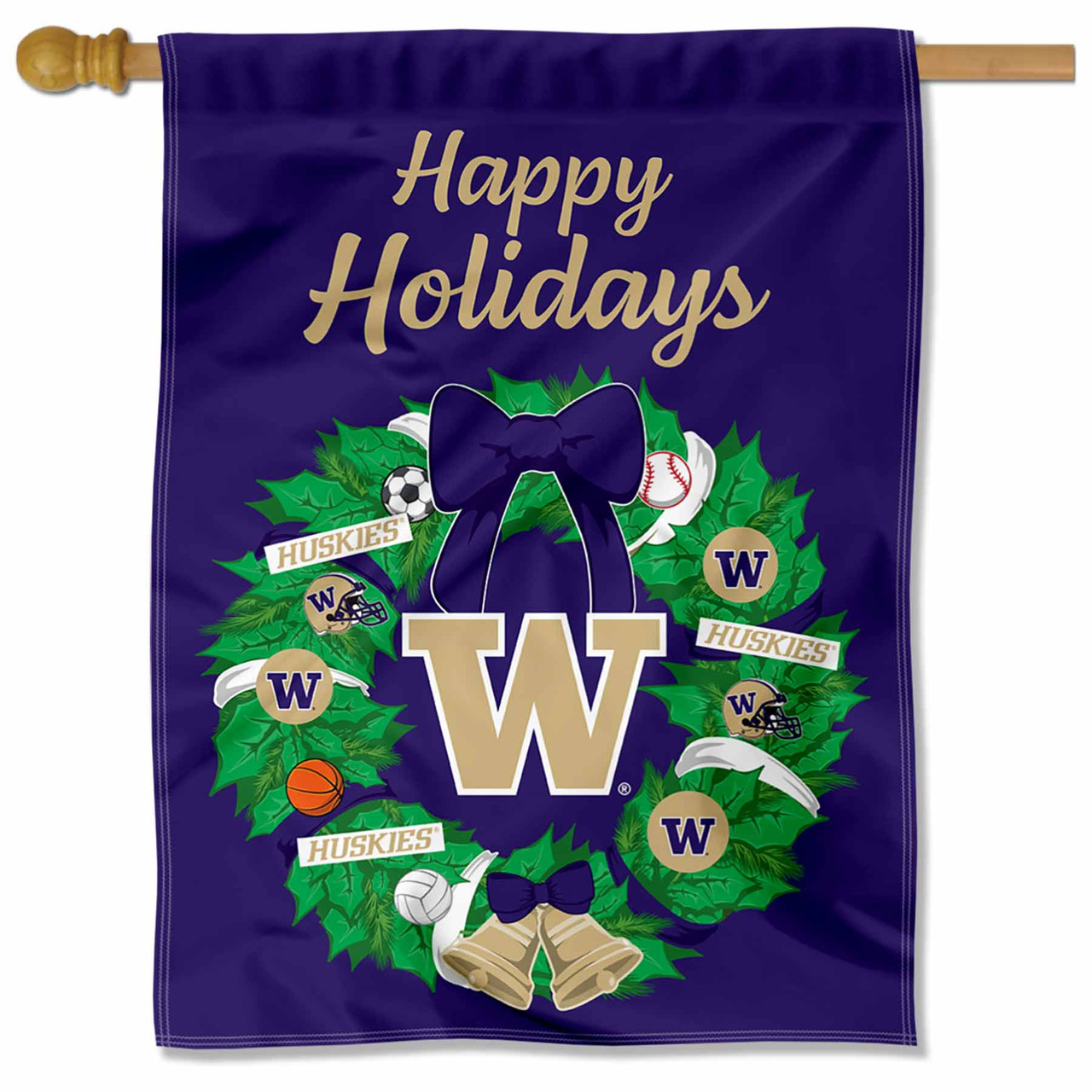 Washington UW Huskies Happy Holidays Christmas Banner Flag