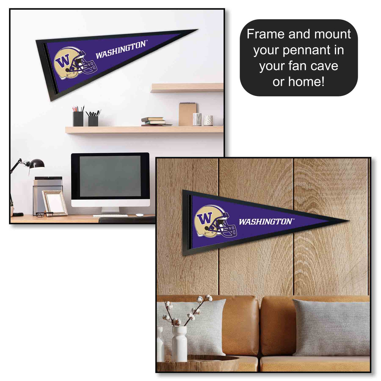 Our Pennant Banner Flag is a great way to show your League allegiance in your sports room, game room, office, bedroom, or any room by displaying on any wall. These Pennant Flags measure a full size 12 in X 30 in, are made of Felt, and are single-sided Screen Printed with the insignias and logos, as shown. Each Flag, Banner or Pennant is Officially Licensed by Team, College, or University which insures current insignias, wordmarks, and authentic colors. The college pennants also include a pennant sleeve on the left side which can be used to insert a pennant stick, if desired.