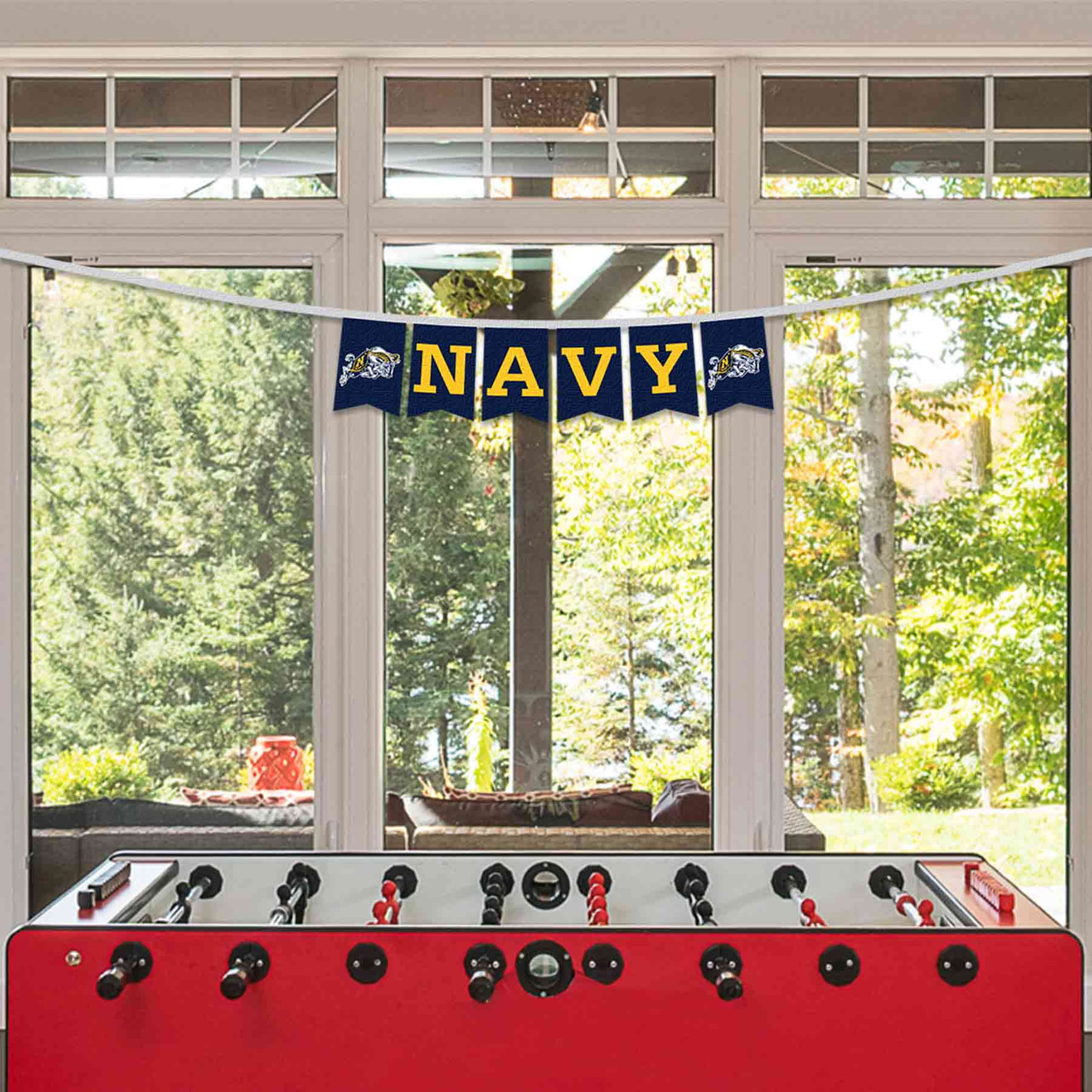 These Small Banner Pennant String Falgs are made of Rigid Polyester Felt and each letter banner measures 6 (height) x 4 (width) inches. The total pennant string length is 8 feet, each banner has extra headband length for tying-up the pennants. The banners are screen printed and the team logos, slogans, and workmarks are printed and viewable on one side. Great to decorate indoor or outdoor and any room, man cave, tailgate canopy, railing, kids room border, or tailgating event. These banner flags on a string are Officially Licensed and School, University or College Approved.