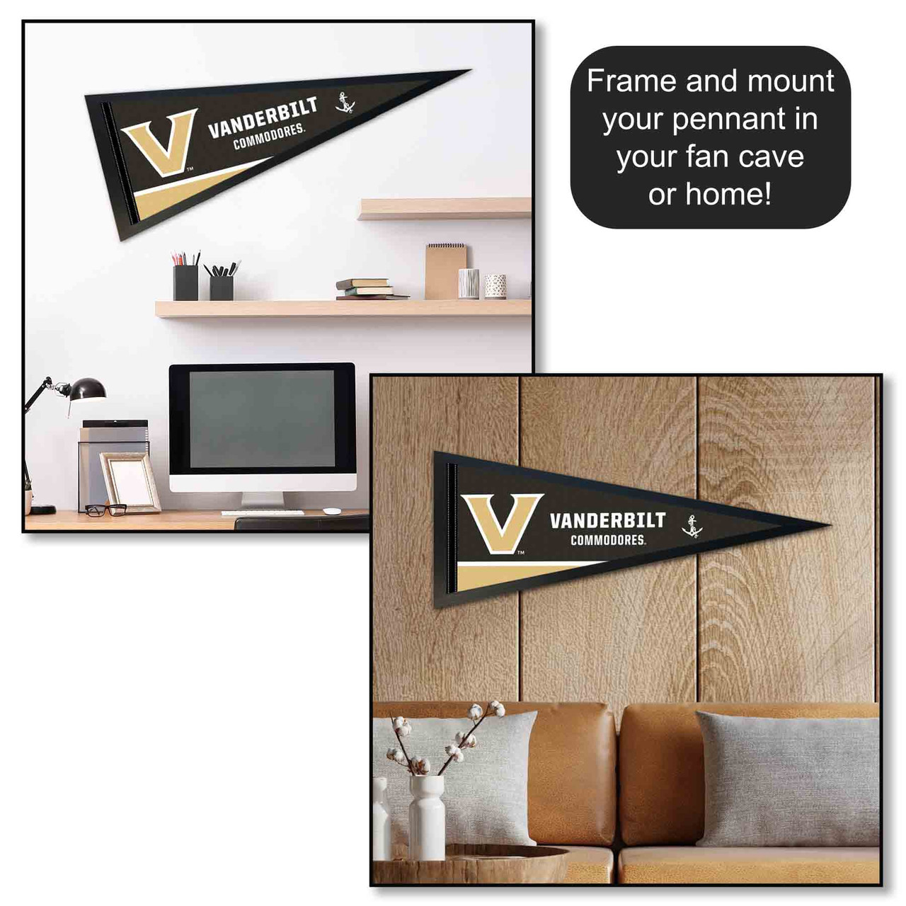 Our Pennant Flag is a great way to show your college allegiance in your sports room, game room, office, bedroom, or any room by displaying as a wall banner. These pennants measure 12 in X 30 in, are made of Felt, and are single-sided Screen Printed with Commodores insignias and logos. Each Flag, Banner or Pennant is Officially Licensed and Team, College, or University Approved approved which insures current insignias, wordmarks, and authentic colors. These pennants also include a sewn pennant stick sleeve on the left side which can be used to insert a pennant stick, if desired.