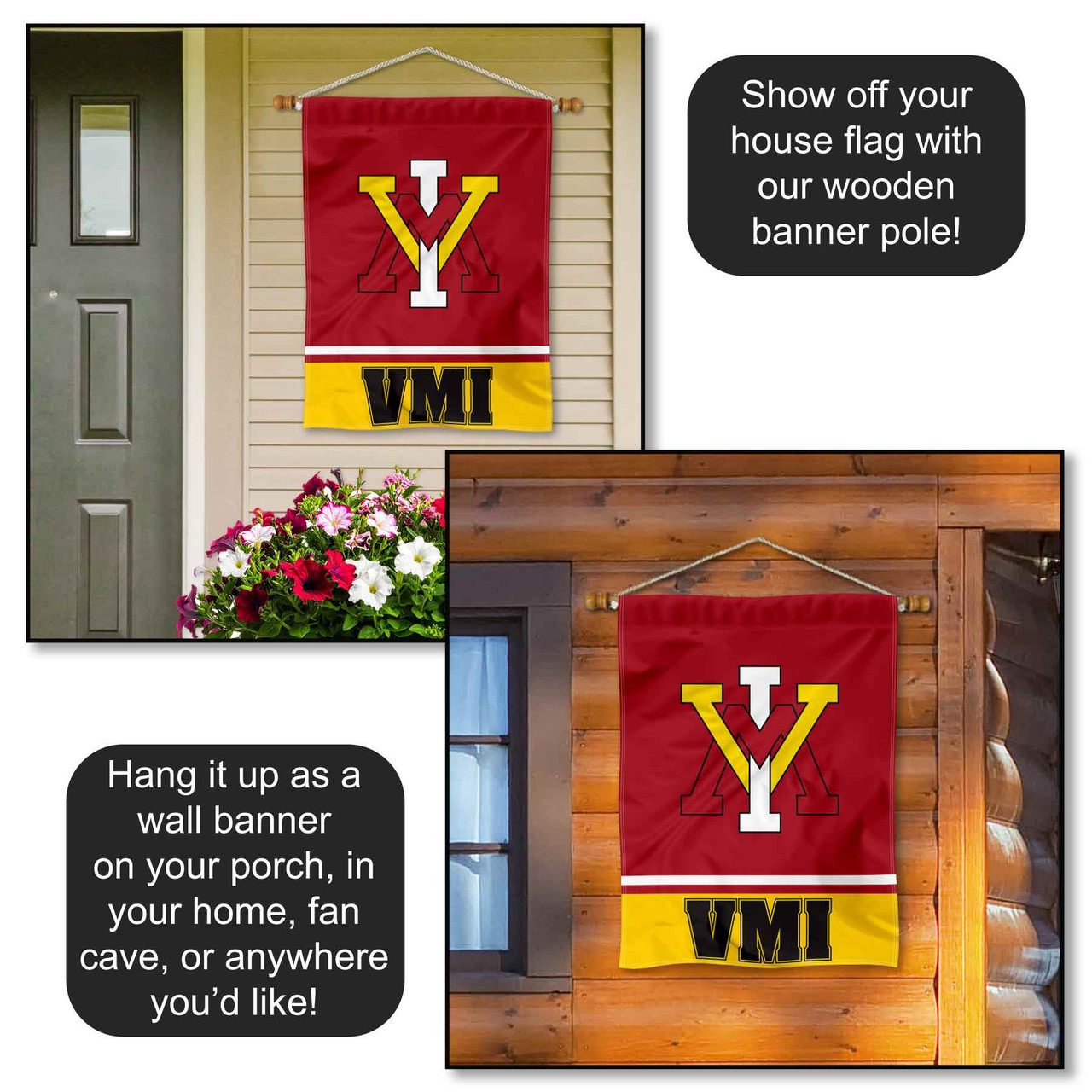 Our House Banner Flag measures 30 in x 40 in in size, has a Double Stitched Perimeter, is made of Single-Ply Polyester with a 2-Ply Bottom Panel, and has a top pole sleeve for inserting your banner pole or flagpole. The Screen Printed logos are Viewable on Both Sides (Team Logo is Reversed on Opposite Side, University bottom panel is 2-Ply Double-Sided). These house flags are Officially Licensed and Team Approved.