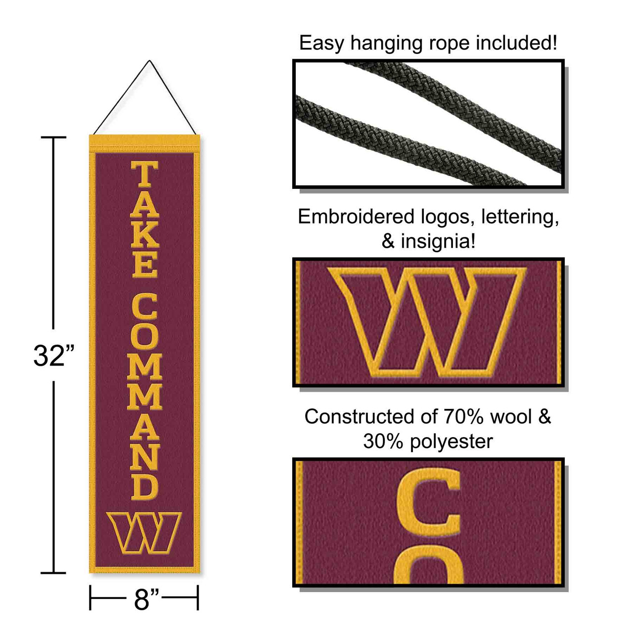 Washington Commanders Take Command 8x32 Inch Vertical Wool Embroidered Hanging Banner