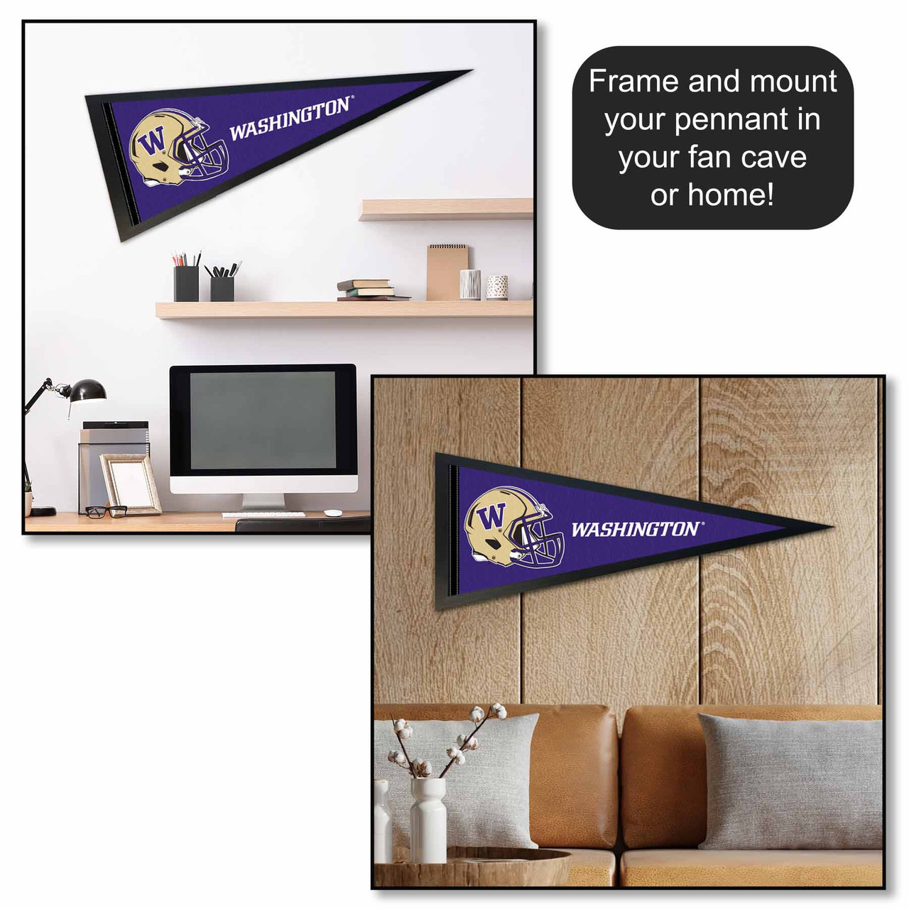 Our Pennant Flag is a great way to show your college allegiance in your sports room, game room, office, bedroom, or any room by displaying as a wall banner. These pennants measure 12 in X 30 in, are made of Felt, and are single-sided Screen Printed with Huskies insignias and logos. Each Flag, Banner or Pennant is Officially Licensed and Team, College, or University Approved approved which insures current insignias, wordmarks, and authentic colors. These pennants also include a sewn pennant stick sleeve on the left side which can be used to insert a pennant stick, if desired.