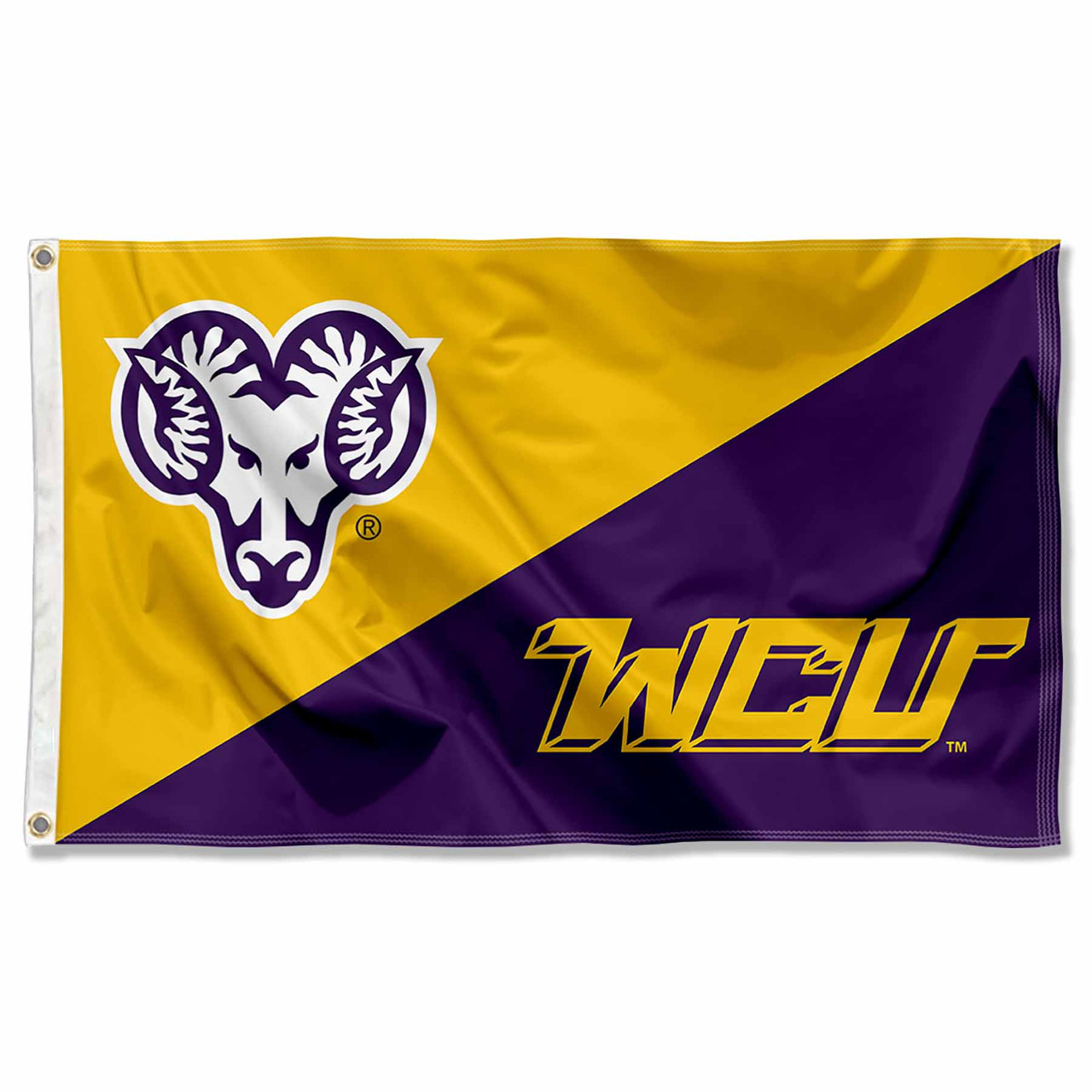 This Flag, Banner or Pennant measures 3 ft x 5 ft in size, has Quadruple Stitched fly ends, is made of durable Polyester, and has two Metal Grommets for attaching to your flagpole. The Screen Printed WCU Golden Rams logos are Officially Licensed and College, University, or Team Approved and are Viewable from Both Sides (Opposite Side is a Reverse Image).