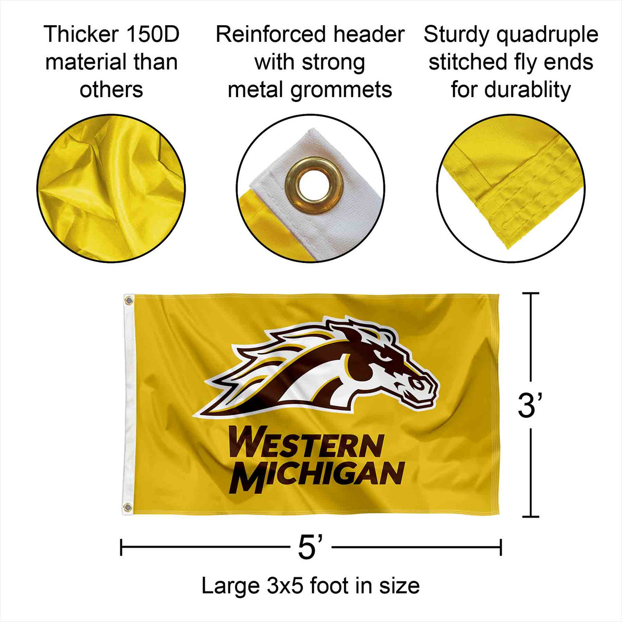 - Flag is made of 1-Ply 100% Polyester, has Quad-Stitched Flyends, and Screen Printed Logos (opposite side is reverse image)