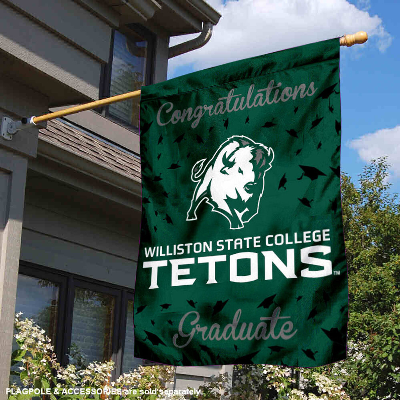 This Flag, Banner or Pennant measures 30 in x 40 in in size, has a Double Stitched Perimeter, is made of Single-Ply Polyester, and has a top pole sleeve to slide your flagpole or banner pole. These banner flags are Officially Licensed and Team, College, or University Approved approved. This flag is made of 1-ply so the logos are Viewable on Both Sides (Opposite Side is a Reverse Image). A unique graduation present, grad gift, or displayed as a wall banner.